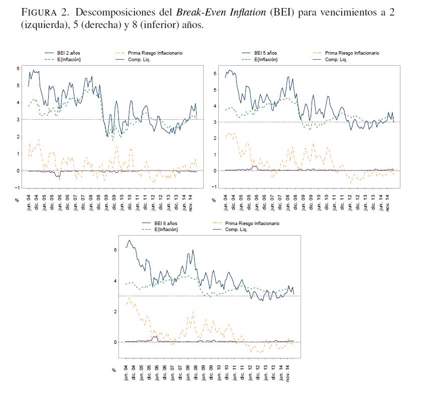 Expectativas de inflación, prima de riesgo inflacionario y prima de liquidez : una descomposición del break-even inflation para los bonos del gobierno colombiano