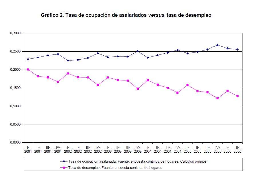En este documento se expone una versión sencilla del modelo de búsqueda. Su aplicación al caso del mercado laboral urbano colombiano (2001:I-2006:II) indica lo siguiente: a) el modelo parece pertinente si se juzga por sus predicciones; b) la relación inversa entre la tasa de ocupación asalariada y la tasa de desempleo predicha por el modelo es, según los datos, especialmente estrecha; c) la caída de la tasa de interés real a lo largo del período 2001:I-2006:II parece haber sido el principal factor determinante de los aumentos de la tasa de ocupación (total y de asalariados) y del salario real medio y de la reducción de la tasa de desempleo; d) el proceso de reducciones de la tasa de interés parece ya temporalmente agotado así que, según el modelo, los aumentos del salario real durante los próximos años han de depender mucho más que en el quinquenio 2001-2006 de los incrementos de la eficiencia laboral.