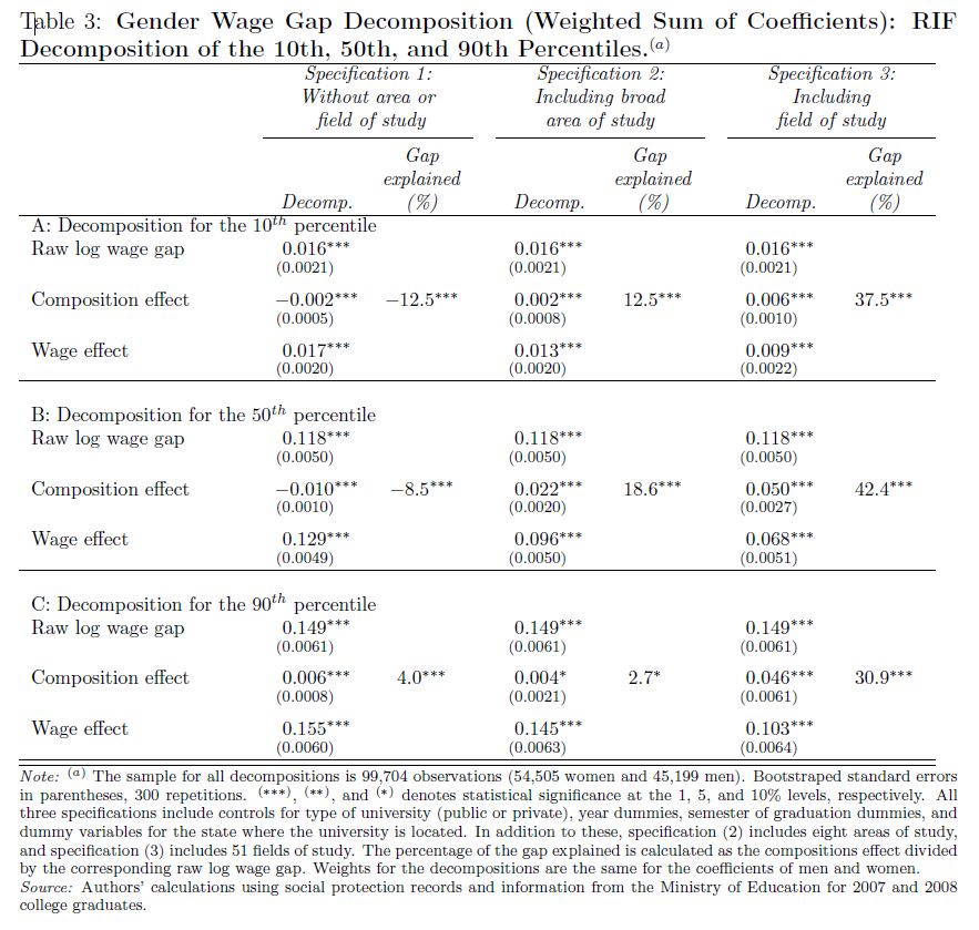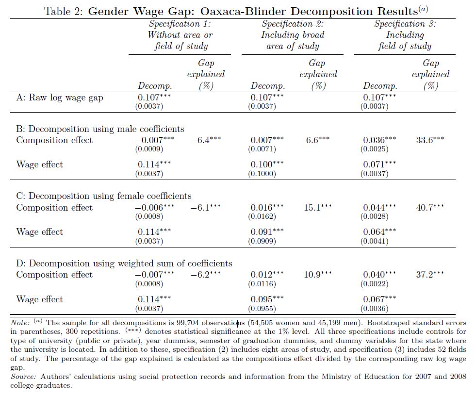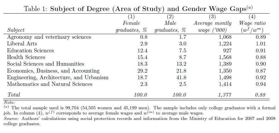 In this paper we show the importance of subject of degree in explaining the gender wage gap in Colombia. In order to minimize the influence of gender differences in experience, promotions, and job changes on the wage gap, we focus on college graduates who
