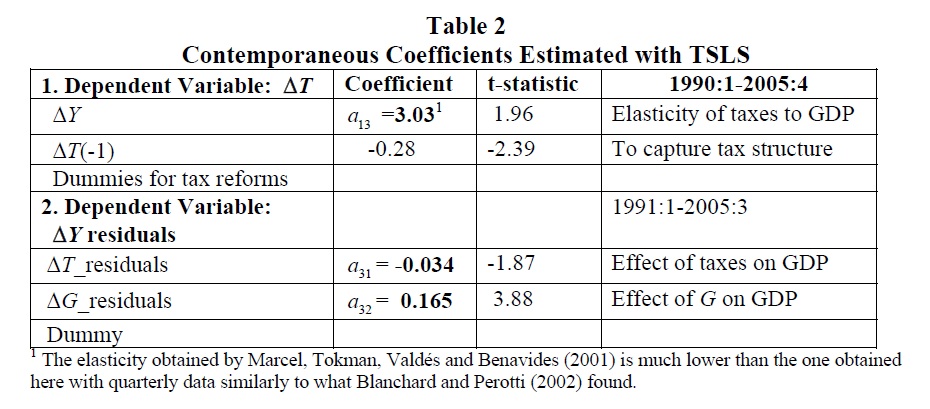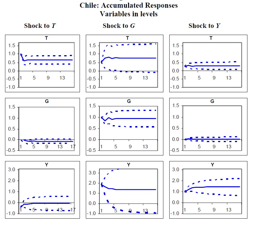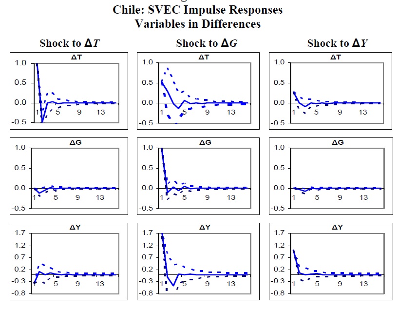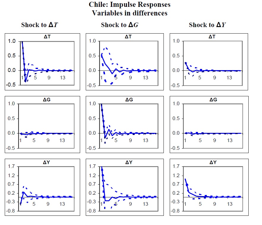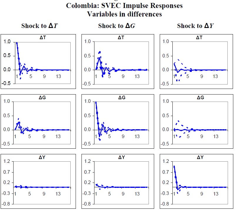 | dc.description.abstract | Structural VAR and Structural VEC models were estimated for Chile and Colombia, aiming at identifying fiscal policy shocks in both countries between 1990 and 2005. The impulse responses obtained allow the calculation of a peso-for-peso ($/$) effect on out | eng |