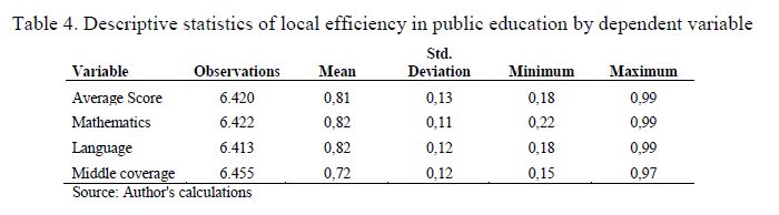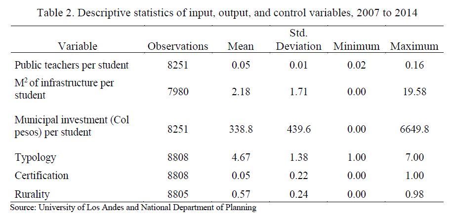 Efficiency of public education in a multiproduct context : the case of colombian municipalities