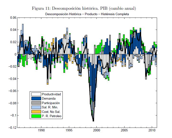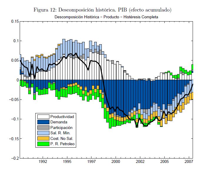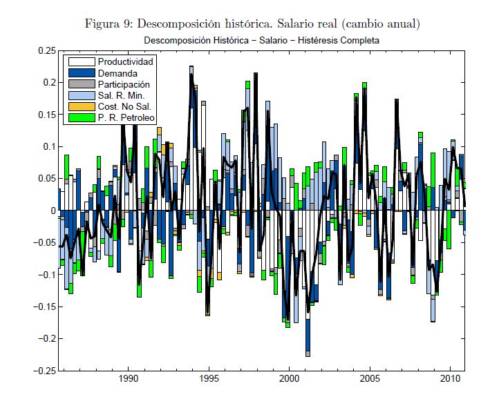 Este trabajo utiliza la metodología VAR-X estructural para explicar por qué creció el desempleo en Colombia desde niveles cercanos a 7 % en 1995:1 hasta 19 % en 2000:1, y por qué permaneció en niveles de dos dígitos durante la década siguiente. Se trató de una combinación desafortunada de choques y de instituciones laborales mal diseñadas para enfrentarlos. La participación laboral se incrementó fuertemente desde comienzos de los 1990s por motivos demográficos y como respuesta a la crisis de 1998-2000; la demanda cayó abruptamente en esos mismos años, debido a la parada súbita de flujos de capital y a una política fiscal y monetaria pro-cíclica; y la dinámica de la productividad ha sido excesivamente lenta, principalmente en los 2000s. Los costos no salariales y el salario mínimo real también han jugado un papel importante en la explicación del nivel y de la persistencia del desempleo.