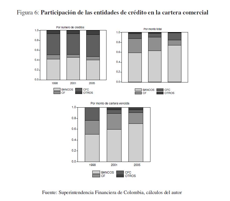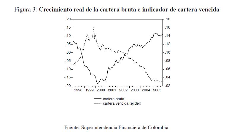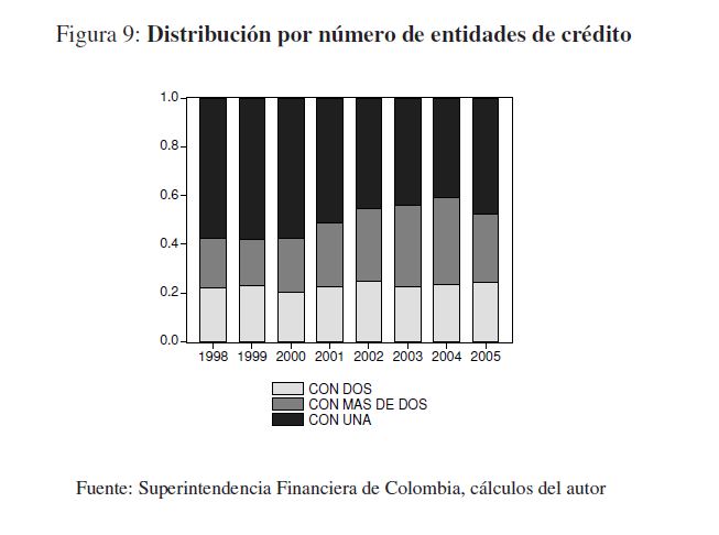 En este documento se caracteriza el endeudamiento del sector corporativo privado con el sistema financiero durante el período 1998-2005, y se hallan los determinantes de la probabilidad de que una empresa colombiana incumpla con el pago las obligaciones que ha contraído con este. A través de un modelo logit multinomial se encontró que la probabilidad de incumplimiento está asociada a indicadores financieros como la liquidez, al número de entidades con los que las empresas tienen créditos y a las características crediticias como los plazos, las garantías y el tipo de establecimiento de crédito. Las predicciones muestran que la probabilidad de incumplimiento se incrementó durante la crisis de finales de la década pasada y en el último año se encuentra en niveles históricamente bajos.