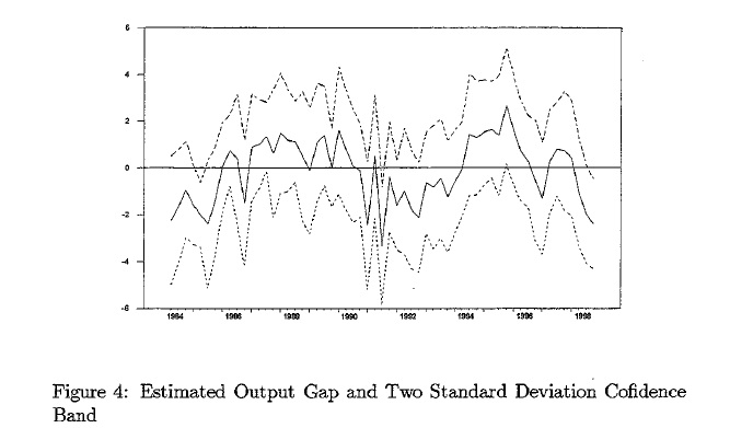 The authors propose a short run model for the monetary transmission mechanism in which the output gap is modelled as an unobserved variable. By estimating this model using maximum likelihood on a Kalman Filter, the authors find an estimate of the unobserv