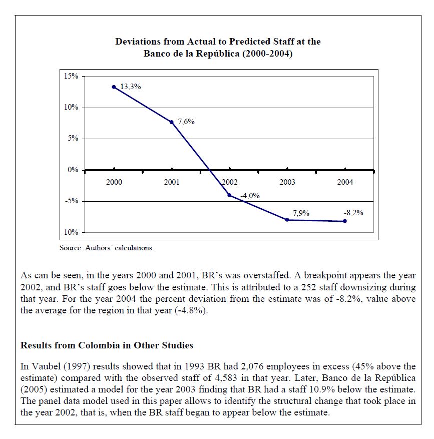 During the period 2000-2004 central banks sustained a generalized reduction in their staff, which was accompanied, in most cases, with significant increases in staff costs. This could obey to an enhanced interest of central banks in focusing on their core
