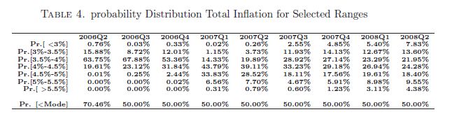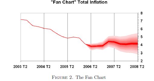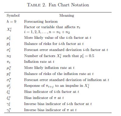 Our current implementation of the Fan Chart follows the original Britton Fisher and Whitley [2] and Blix and Sellin [1] proposal in which the inputs enter at the fourth and ninth quarters and are distributed within the forecasting horizon according to pre
