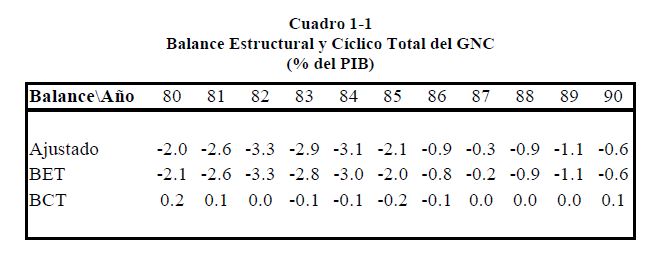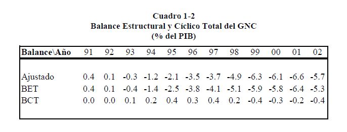 Balance fiscal estructural y cíclico del Gobierno Nacional Central de Colombia, 1980-2002