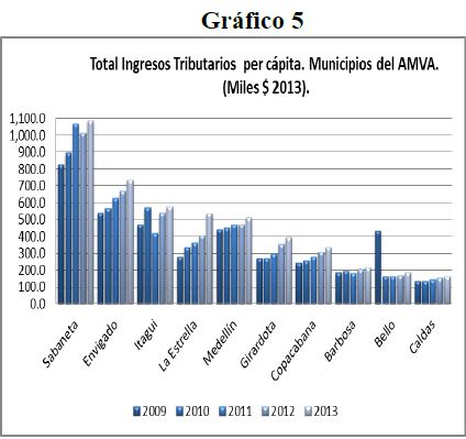 Evolución de las cifras fiscales entre 2009 - 2013 de los municipios del Área Metropolitana del Valle de Aburrá -AMVA-