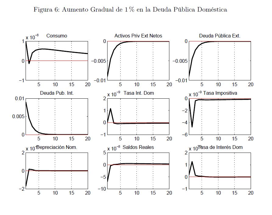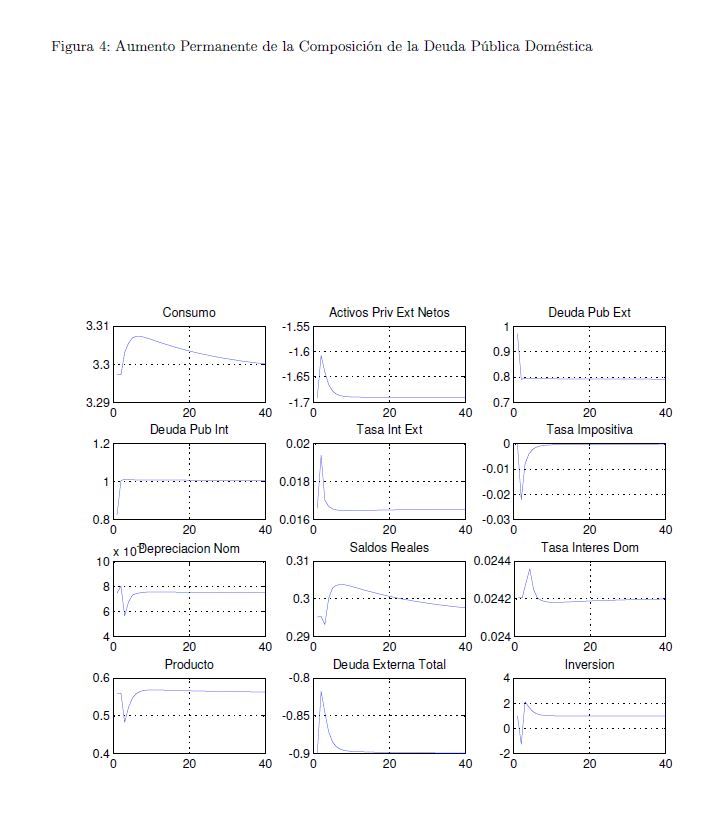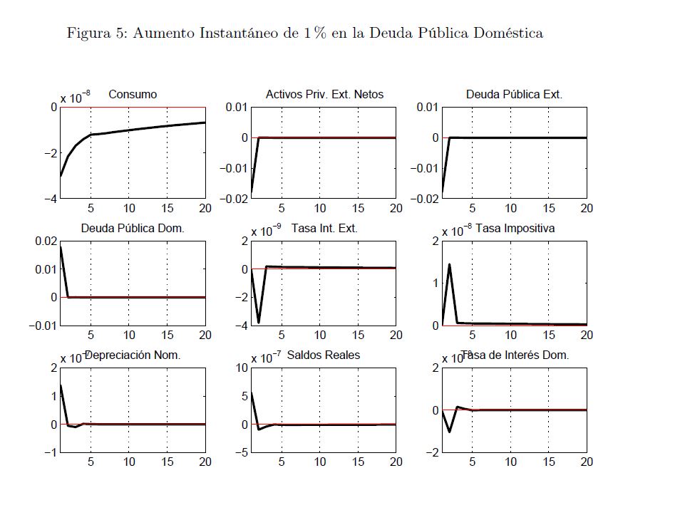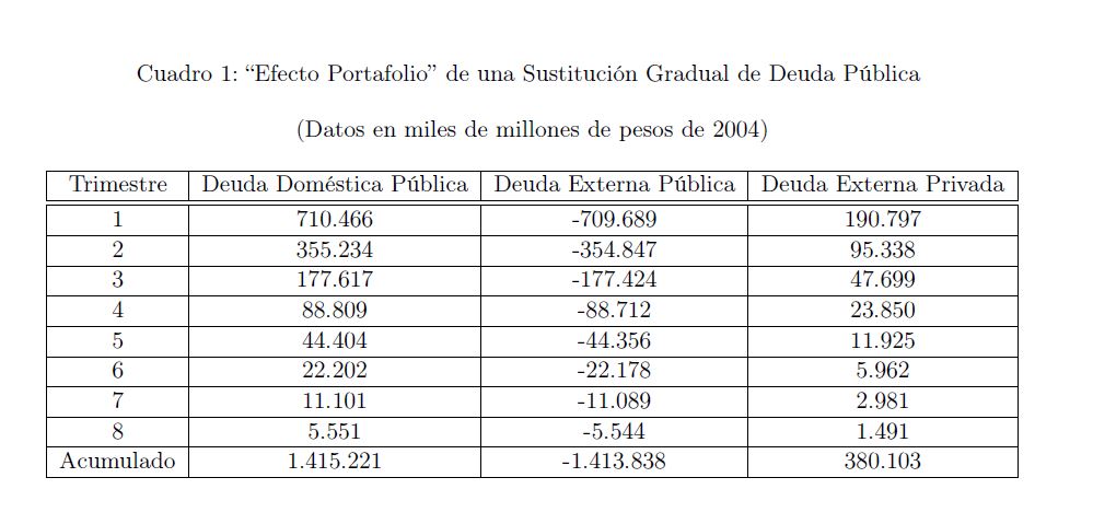 Este artículo presenta un análisis cuantitativo del impacto macroeconómico de la forma como se financia el déficit fiscal en una economía pequeña y abierta. En particular, nos enfocamos en evaluar el impacto macroeconómico de una situación en la que, dado un nivel de déficit fiscal, el gobierno decide entre financiarlo con deuda doméstica o externa. Para este propósito empleamos un modelo de equilibrio general dinámico y estocástico para una economía pequeña y abierta. Al calibrar el modelo a la economía colombiana, encontramos que los efectos de una sustitución de deuda pública externa por interna dependen de qué tan permanente sea dicha sustitución. Una sustitución transitoria tiene efectos macroeconómicos despreciables, con excepción de su impacto sobre los flujos de capital privados (“efecto portafolio”). Es decir, un aumento de la deuda pública doméstica vis a vis una reducción en la externa, es balanceado por una reducción de los activos externos netos privados. Por el contrario, una sustitución permanente de un 10 % de deuda externa por doméstica tiene efectos macroeconómicos transitorios pero considerables sobre la actividad real y los flujos de capital. Dicha recomposición genera un aumento en los activos externos netos de un 5 % acompañada de una depreciación nominal cercana al 1 %. Aunque nuestros resultados son generales en ambientes con flexibilidad de precios, especulamos que pueden variar en presencia de incertidumbre acerca de la sostenibilidad de las finanzas públicas y/o rigideces nominales y reales.