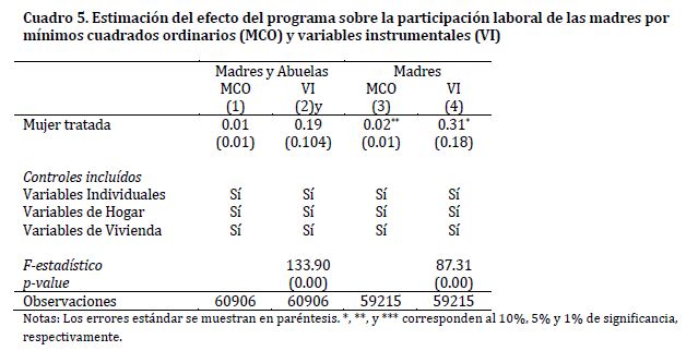 Efectos laborales de los servicios de cuidado infantil : evidencia del programa buen comienzo