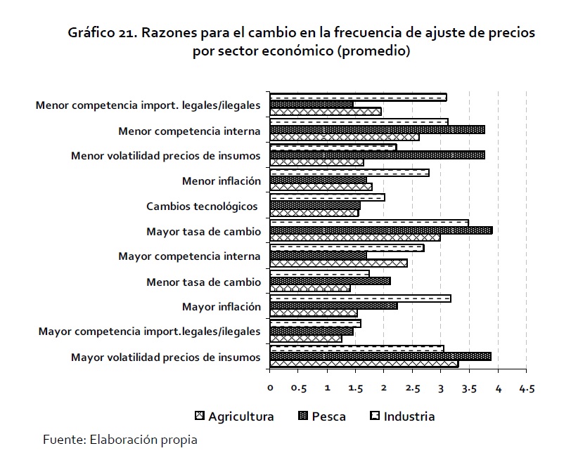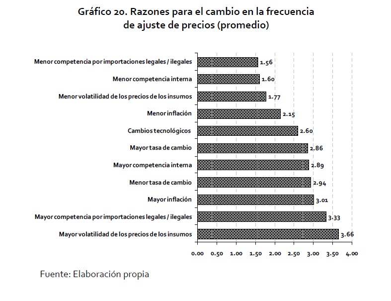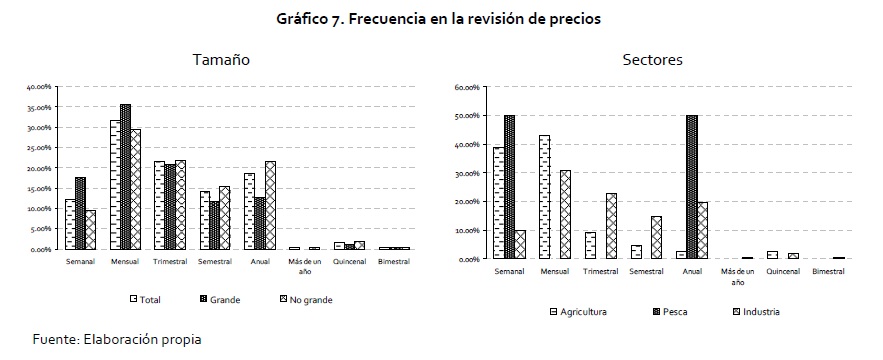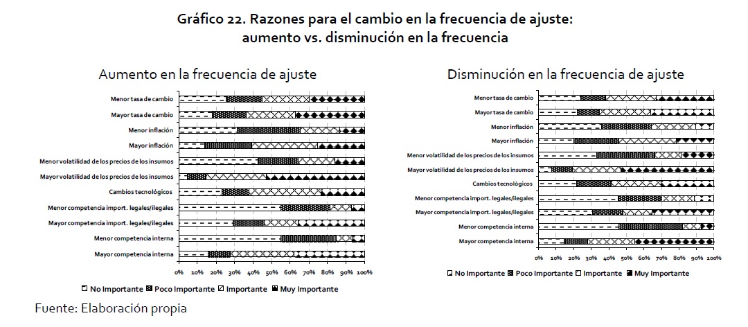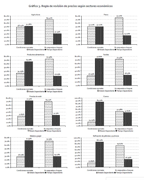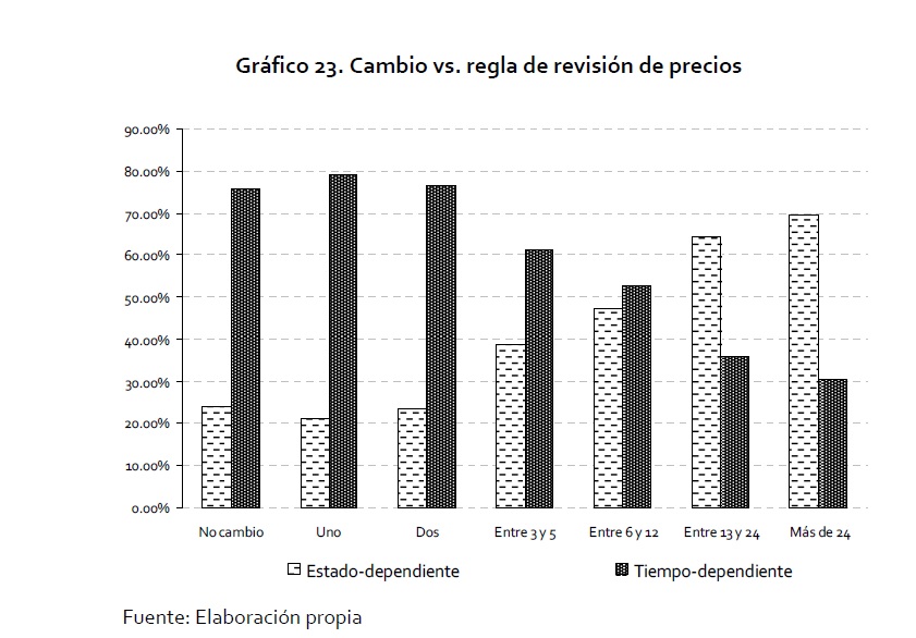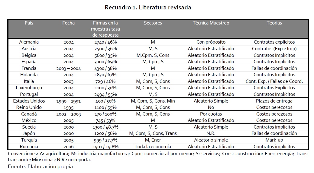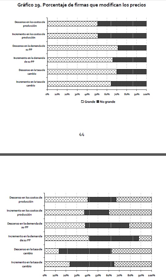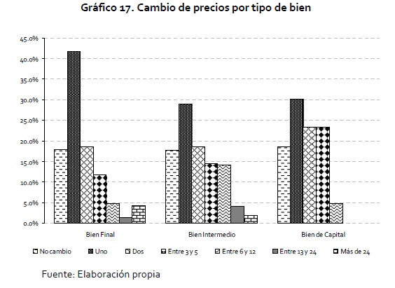 En este documento se reportan los resultados de una encuesta por medio de la cual se interrogó a los empresarios colombianos acerca de la forma como fijan los precios de sus principales productos. El diseño del formulario sigue de cerca las propuestas de Blinder (1991, 1994, 1998) y de la red de persistencia de la inflación de los países de la Unión Europea (Fabiani et al. 2005). El propósito de la encuesta es profundizar en el conocimiento sobre el proceso de fijación de precios que siguen las empresas. Específicamente, se explora el grado de autonomía que tienen las firmas para cambiar sus precios; si las políticas de precios siguen un criterio de reglas periódicas en el tiempo o dependen del estado de la economía; se indaga por el conjunto de información que emplean las empresas para cambiar sus precios; por la frecuencia de las revisiones de los precios y de los cambios y el uso de algún tipo de discriminación para determinar un precio. De otro lado, se estudian las razones que llevan a las firmas a no modificar sus precios, así como la velocidad de reacción ante diferentes choques económicos.
