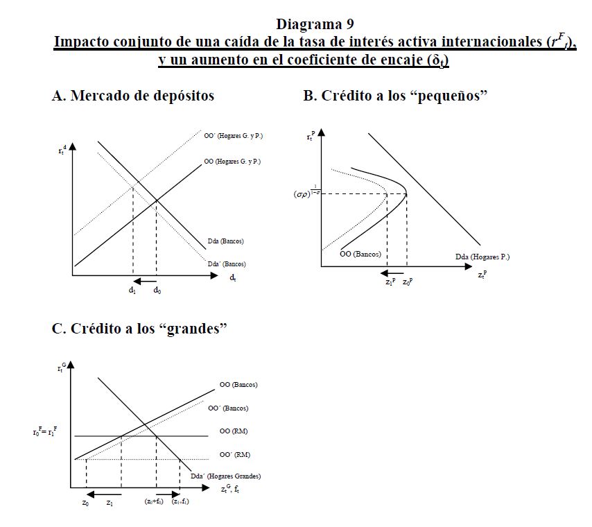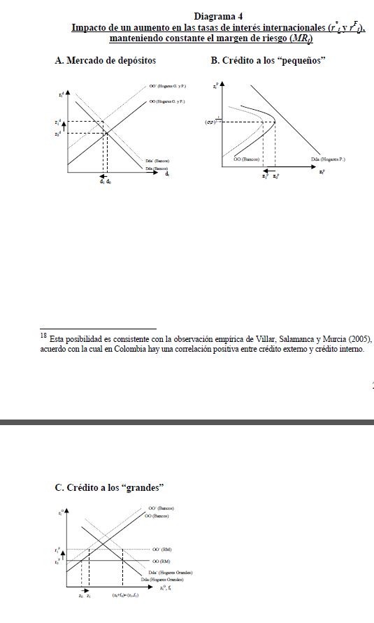 En este trabajo se desarrolla un modelo teórico con fundamentos microeconómicos sobre el funcionamiento del mercado de crédito en una economía abierta. El modelo permite identificar los canales a través de los cuales el sistema financiero doméstico puede propagar y amplificar los ciclos inducidos por fluctuaciones en las tasas de interés internacionales y es consistente con la observación empírica de una correlación positiva entre el crédito en pesos al sector privado y los flujos de capitales que se puede apreciar en el caso colombiano. Con base en el modelo se muestra que la utilización activa de los coeficientes de encaje bancario con propósitos contracíclicos, tal como fue sugerida por Edwards y Vegh (1997), puede ser contraproducente.