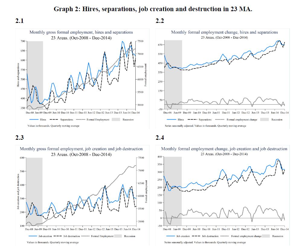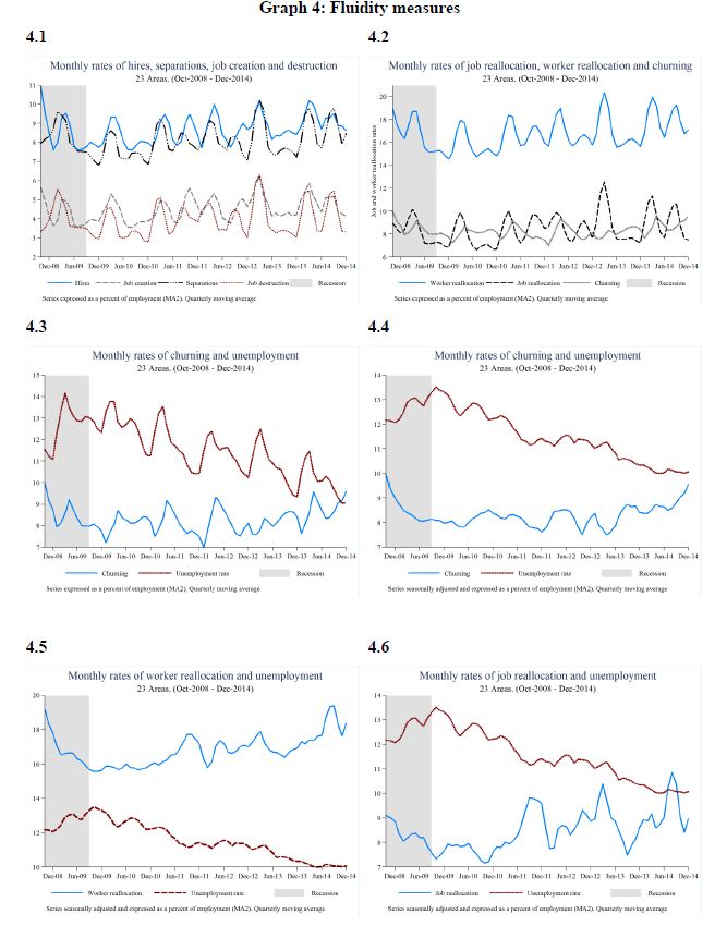 In this paper, we compute standard measures of fluidity for the Colombian urban labor market: worker and job reallocation rates and the excess of worker reallocation over job reallocation. We analyze the period between the second semester of 2008 and the