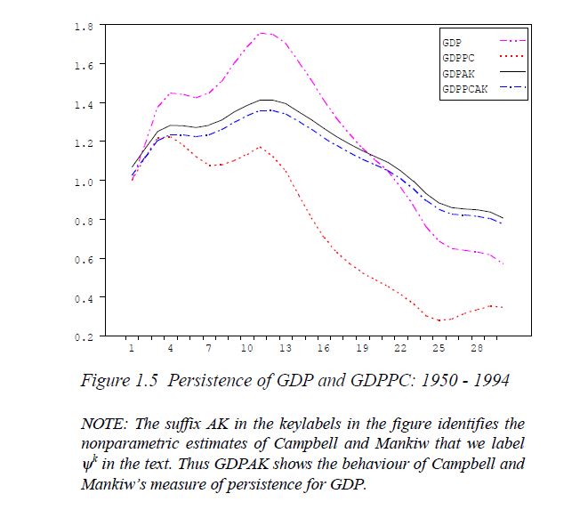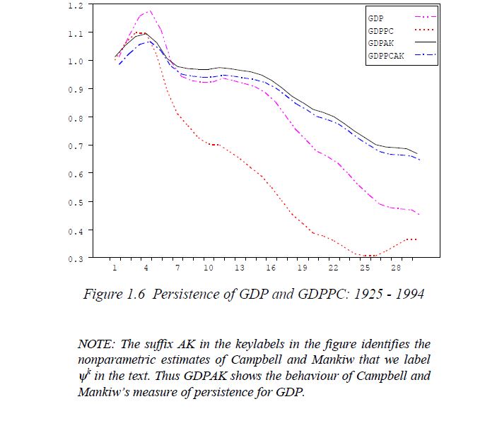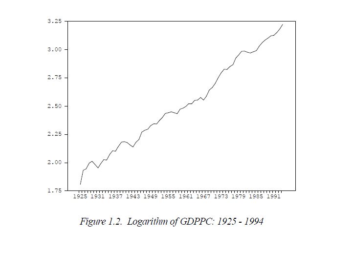 This paper deals with the size of the random walk property of Colombia´s output in two periods 1925-1994 and 1950-1994. GDP and GDPPC were both found to be integrated of order one a result which is very well known. The sequences are highly persistent, spe