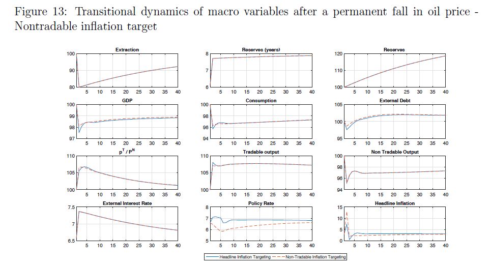 The sudden collapse of oil prices poses a challenge to inflation targeting central banks in oil exporting economies. This paper illustrates that challenge and conducts a quantitative assessment of the impact of permanent changes in oil prices in a small a