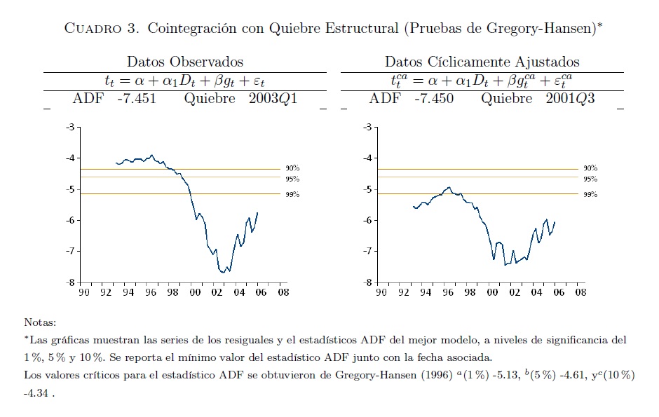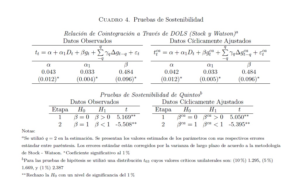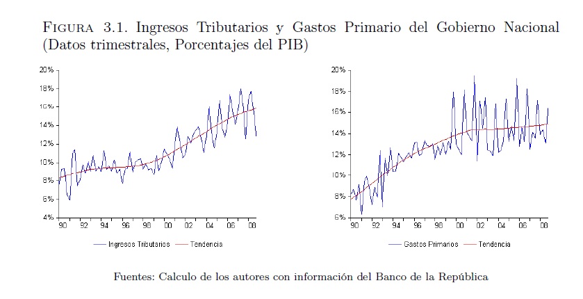 En este trabajo se analiza empíricamente la sostenibilidad fiscal en Colombia a través de las técnicas de cointegración. En particular, usando los ingresos tributarios y los gastos primarios del gobierno nacional central para el período 1990Q1 a 2008Q4 (datos reales y ajustados por el ciclo económico), en el documento se examina si las cuentas fiscales del gobierno han sido sostenibles en el sentido fuerte o débil, se establece el tipo de interdependencia que ha existido entre los ingresos y los gastos y se evalúa si han sido simétricos los procesos de ajuste y desajuste fiscal, que usualmente se presentan a los largo de los ciclos económicos. El tema resulta relevante en la actual coyuntura, en la medida que el gobierno ha venido anunciado una postura fiscal moderadamente contracíclica para compensar los efectos de la crisis, con importantes implicaciones sobre su nivel de endeudamiento. La incertidumbre sobre el tiempo que tomará la recuperación económica junto con ciertos hechos fiscales sobrevinientes (caída en las rentas petroleras, expiración del impuesto al patrimonio y los nuevos compromisos de gasto), hacen previsible que el gobierno adelante nuevas reformas en el mediano plazo para ajustar sus finanzas. En ese contexto, la adopción de una regla fiscal bien diseñada sobre las cuentas del gobierno, como la que empieza a estudiar la autoridad fiscal, contribuirá a consolidar la sostenibilidad fiscal del país en el largo plazo.