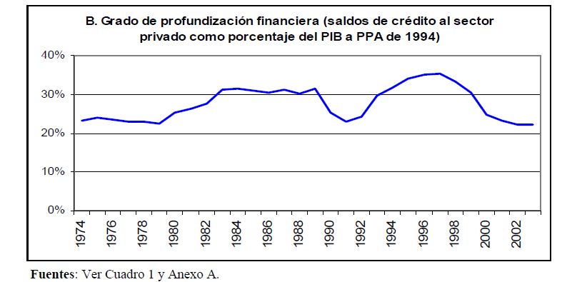Este trabajo analiza los vínculos entre crédito doméstico, flujos externos de capital y regulación financiera en Colombia en el período comprendido entre 1974 y 2003. Para ese propósito se incluye una visión histórica sobre la evolución de las variables y se hacen análisis cuantitativos sobre los determinantes del grado de profundización financiera, utilizando métodos de descomposición contable y ejercicios econométricos sencillos. Se observa que los ciclos en el crédito doméstico al sector privado en Colombia han coincidido con ciclos en la misma dirección en los flujos externos de capital. Ese comportamiento procíclico del crédito ha sido reforzado además por la política de regulación financiera. Entre 1974 y 1991, la prociclicidad de la política surgió fundamentalmente del comportamiento de los coeficientes de encaje requerido. En el período más reciente, esos coeficientes se movieron en forma menos procíclica. Durante la crisis que se inició en 1998, incluso, la política de encajes fue abiertamente contracíclica. En esta última etapa, sin embargo, la introducción del impuesto a las transacciones financieras actuó en la dirección contraria y reforzó la caída en el crédito. El resultado neto es que el grado de profundización financiera en Colombia a finales de 2003 se ubicaba por debajo de los niveles que tenía en 1974. Esos niveles son extremadamente bajos en comparación con los de economías desarrolladas o con los de economías en desarrollo exitosas.