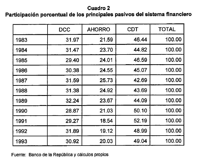 Una explicación ofrecida para los altos márgenes es la costosa regulación bancaria, especialmente importante en países en desarrollo. En Colombia, el sistema financiero está altamente regulado. Esta regulación, representada en topes a las tasas de interés, altos requisitos de encajes e inversiones forzosas (existentes en la década pasada) que incluían el crédito dirigido, causa un costo de oportunidad para los bancos que se ve reflejado en el margen de intermediación(3). Por ejemplo, el requerimiento de encaje promedio en 1987 sobre cuentas corrientes, depósitos de ahorro y CDT era del 15.7% y en 1994 es del 15.5%. Además, en 1988 la fracción de depósitos que se debía destinar a inversiones forzosas era del 12.8%. En los Estados Unidos, en comparación, en 1980, un 3% de requisito de encaje fue establecido para los primeros US$25 millones, y un 12% de ahí en adelante. En ausencia de estas regulaciones el margen de intermediación sería menor. Una política derivada de la hipótesis de que la regulación determina el alto margen es la desregular, y con la ello ocasionar una baja en el margen.