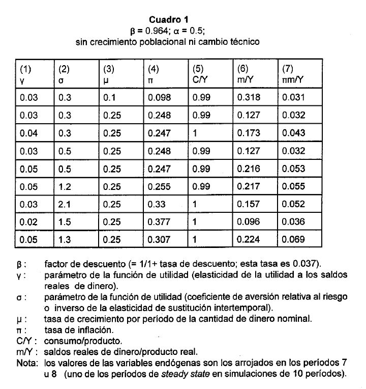 Para alcanzar ese propósito se utilizó el esquema teórico de Sidrauski (1967) sobre el crecimiento de una economía monetaria, pero bajo el supuesto de previsión perfecta. Este es el paradigma de la macroeconomía moderna. El método utilizado fue el de construir un modelo numérico que se aproximase de la mejor manera posible de la teoría. Cuando el modelo numérico arrojó resultados razonables se procedió a calcular el costo social de la inflación (perfectamente prevista)y, de paso, se estimaron los beneficios fiscales de la inflación (el señoraje y el impuesto inflacionario) y la elasticidad interés de la demanda de dinero.