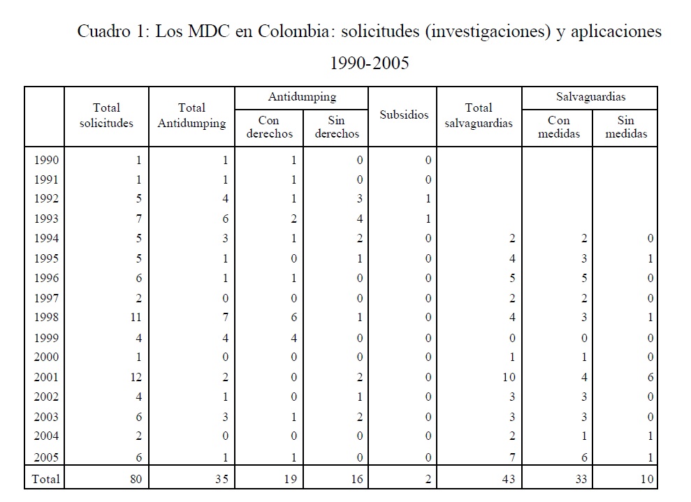 Los economistas han identificado el desarrollo de un nuevo tipo de proteccionismo comercial basado en el uso de barreras no arancelarias a las importaciones. La razón de este nuevo proteccionismo es la extensión adquirida por los acuerdos de libre comercio. Este documento revisa la experiencia colombiana (1990- 2005) relativa a este nuevo proteccionismo, específicamente las solicitudes y aplicaciones de mecanismos de carácter transitorio, a saber, medidas anti-dumping y salvaguardias. De los resultados del ejercicio econométrico puede deducirse que: a) las medidas proteccionistas no arancelarias de carácter transitorio, y sus solicitudes, dependen de dos factores: el grado de penetración de las importaciones y la tasa de crecimiento del PIB real, y b) las medidas anti-dumping hacen parte del nuevo proteccionismo, también en Colombia, a pesar de su origen jurídico y de su propósito formal.