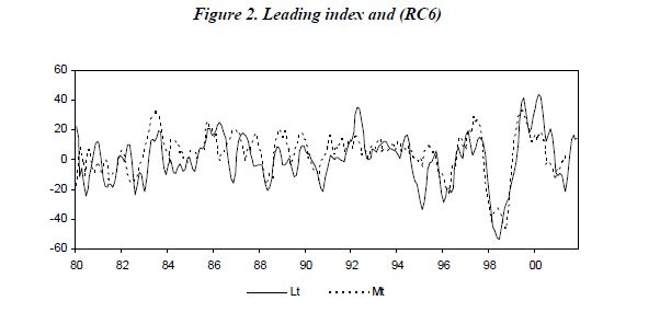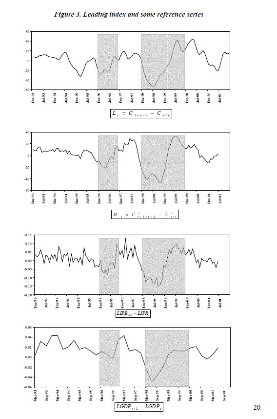In this paper, we propose a methodology for calculating a leading index of the economic activity based on a modification of Stock and Watson’s (1989, 1991, 1992) approach. We use Kalman filter techniques for estimating the state space representation of th
