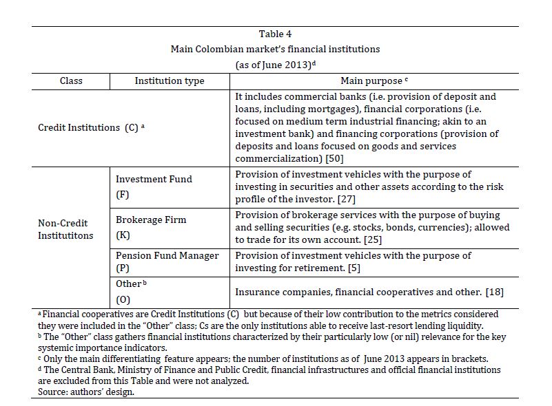 Macro-prudential assessment of Colombian financial institutions' systemic importance