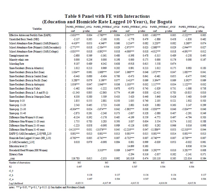 We use data of neighborhoods of Bogotá to assess the causal relation between their adolescent fertility and their homicide rates. We find that neighborhoods with high adolescent fertility rates, and that have low secondary enrollment and high crime rates