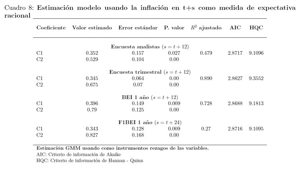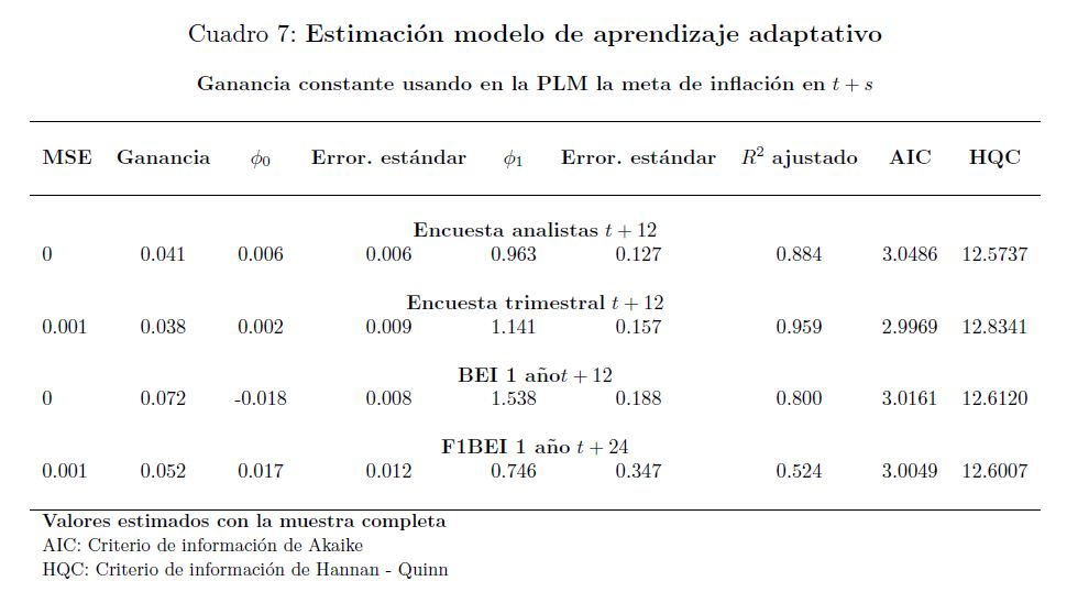 En este documento se analiza el mecanismo de formación de las expectativas de inflación en Colombia usando diferentes medidas de esta variable a uno y dos años. Los resultados indican que las expectativas se forman de manera adaptativa y racional. Hay evidencia que soporta la hipótesis de aprendizaje adaptativo. Las pruebas estadísticas sugieren que la meta de inflación ha ganado credibilidad y se puede considerar como una expectativa racional.