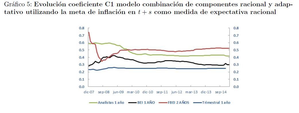 | dc.description | En este documento se analiza el mecanismo de formación de las expectativas de inflación en Colombia usando diferentes medidas de esta variable a uno y dos años. Los resultados indican que las expectativas se forman de manera adaptativa y racional. Hay evidencia que soporta la hipótesis de aprendizaje adaptativo. Las pruebas estadísticas sugieren que la meta de inflación ha ganado credibilidad y se puede considerar como una expectativa racional. | spa |