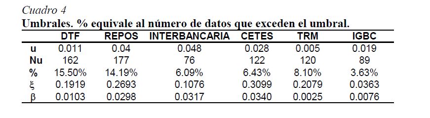 Valor en riesgo de los activos financieros colombianos aplicando la teoria de valor extremo