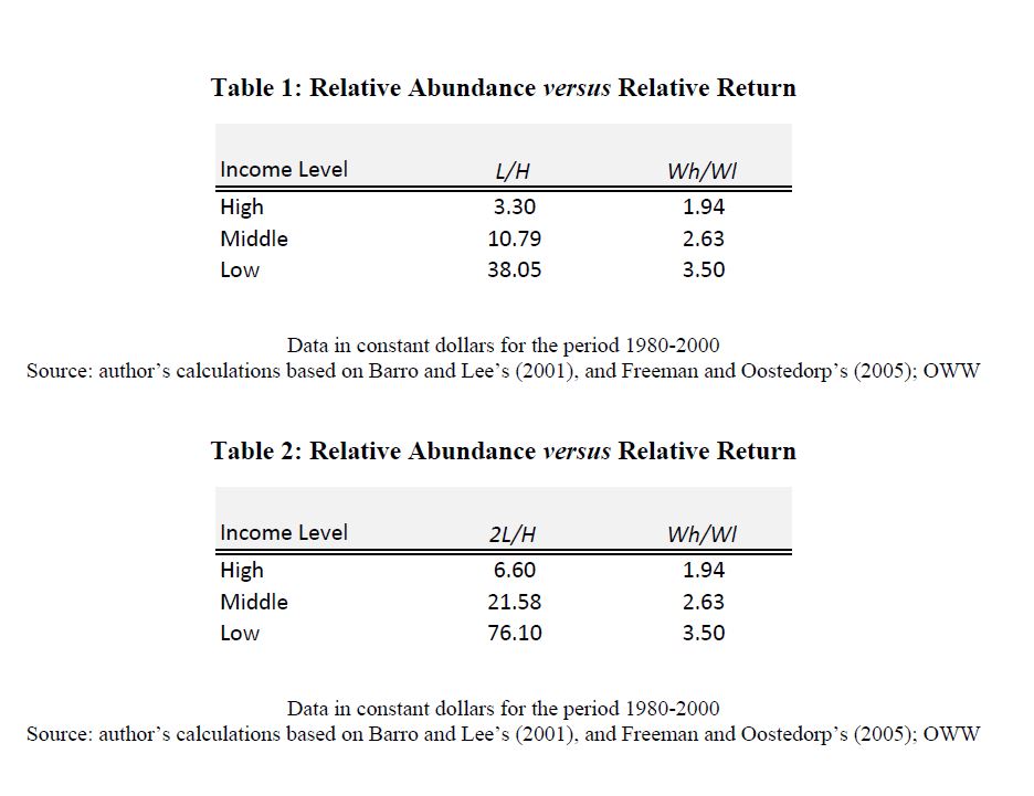This paper provides evidence of positive externalities in human capital that help to explain divergences in development worldwide. We estimate the supply and demand for human capital using a five-year panel involving 60 countries and covering the period 1