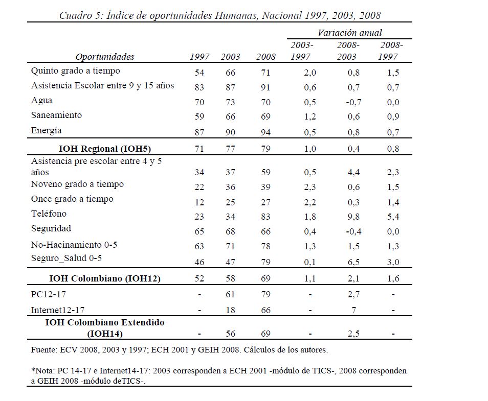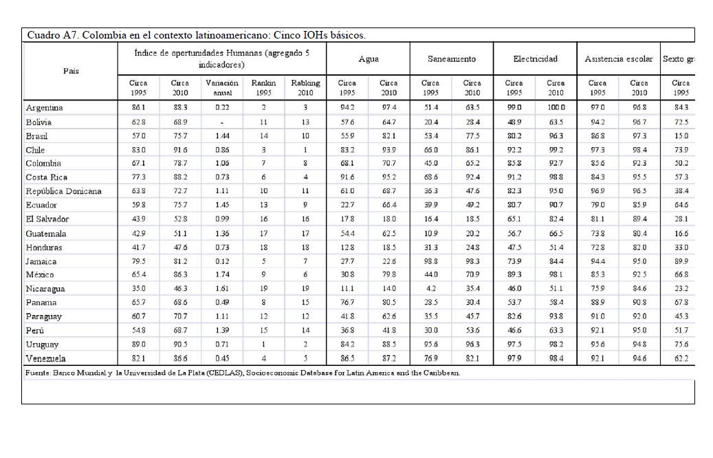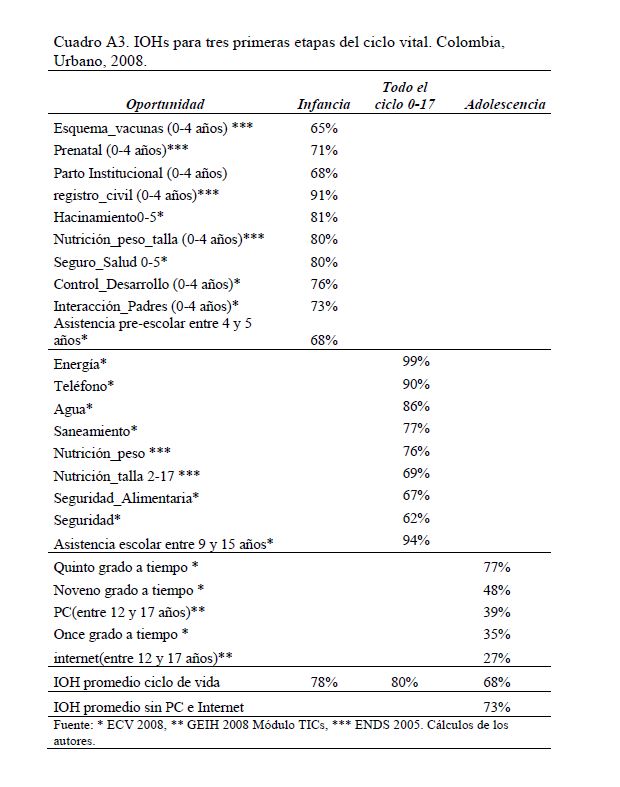 Desigualdad de oportunidades de los ninos, Circunstancias, Índice de oportunidades humanas