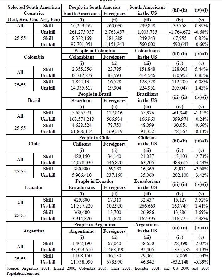 This document provides evidence to show that Colombia is a net exporter of 5% of its population with a university or post-graduate degree, while Argentina, Brazil and Chile are net importers of people with a similar level of education. We find that those