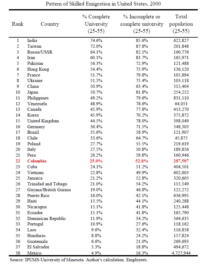 | dc.description.abstract | This document provides evidence to show that Colombia is a net exporter of 5% of its population with a university or post-graduate degree, while Argentina, Brazil and Chile are net importers of people with a similar level of education. We find that those | eng |