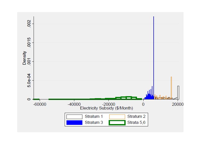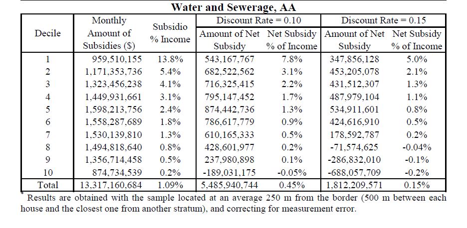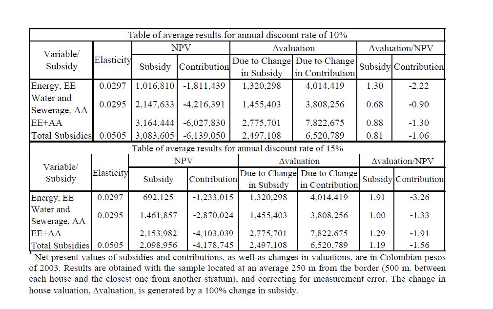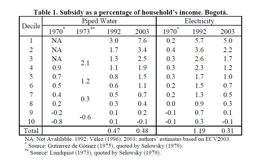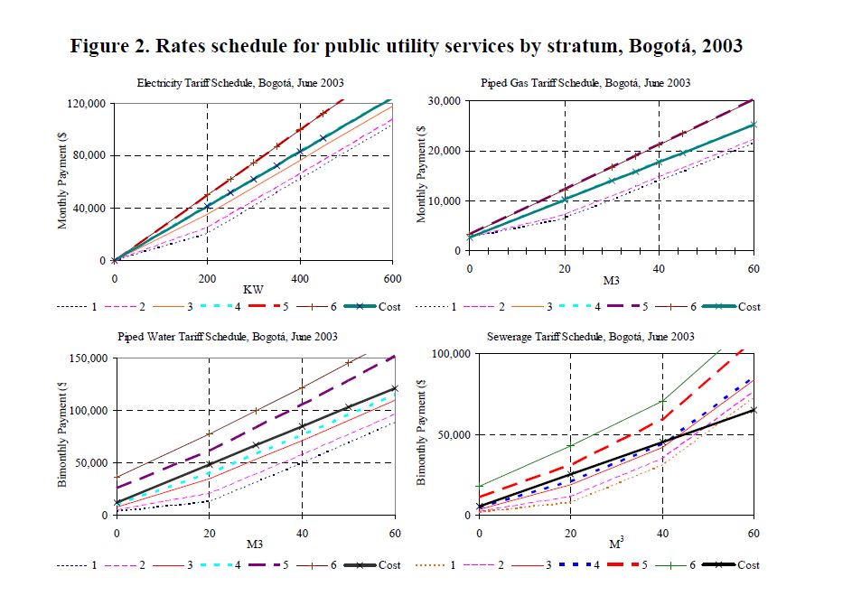 Domiciliary public utility services in Colombia have a cross subsidy system which charges subsidized rates to the households who live in houses located in strata associated to low wealth levels, and taxed rates to the better off. We assesses the hypothesi