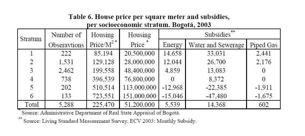 Stratification and public utility services in Colombia: subsidies to households or distortions on housing prices?