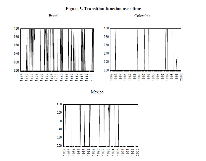 Expansions and contractions in Brazil, Colombia and Mexico: a view through non-linear models