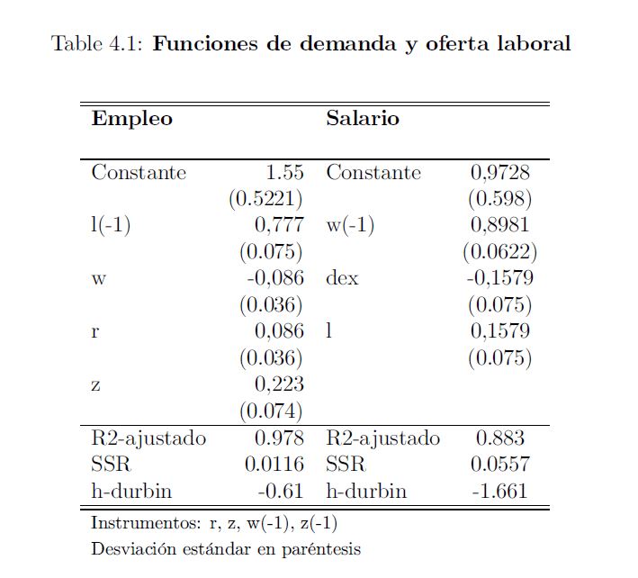 Se estimó un model neo-clásico del mercado laboral, con respuestas lentas o ajustes parciales, para el caso de la evolución del empleo, el desempleo transitorio (definido como la diferencia entre el desempleo total y el permmanente) y el salario real en el conjunto de las siete principales ciudades colombianas entre 1985 y 1996. Los resultados son consistentes con el modelo supuesto y, en particular, muestran que el empleo es sensible al salario real y al desempleo transitorio, y recíprocamente. Además, tanto el empleo como el desempleo transitorio y el salario real dependen simultáneamente de las tres variables exógenas incorporadas en el modelo : el producto, el costo de uso del capital y la población en edad de trabajar. En equilibrio, al cual tiende el mercado según el modelo, el desempleo transitorio es nulo, así que la tasa de desempleo se hace igual a la permanente o natural.