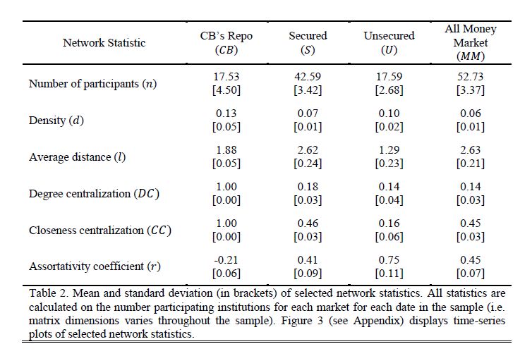 | dc.description.abstract | We examine how liquidity is exchanged in different types of Colombian money market networks (i.e. secured, unsecured, and central bank's repo networks). Our examination first measures and analyzes the centralization of money market networks. Afterwards, b | eng |