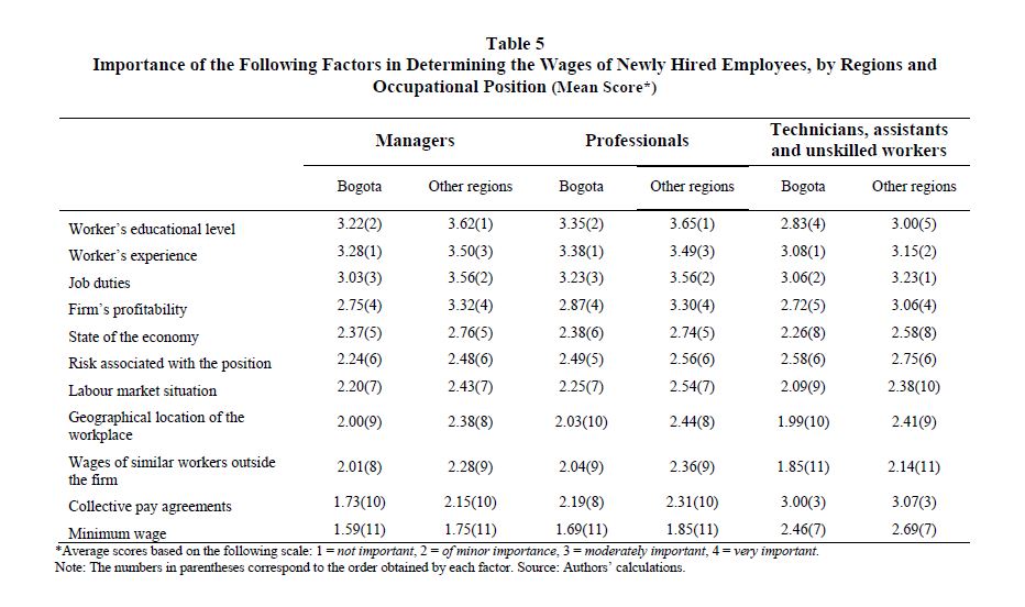 Wage-setting decisions on newly hired employees: survey evidence from colombian firms