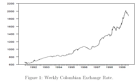 Bayesian model estimation and selection for the weekly colombian exchange rate