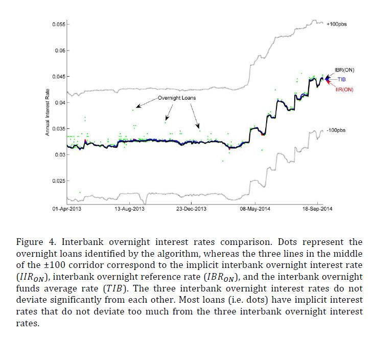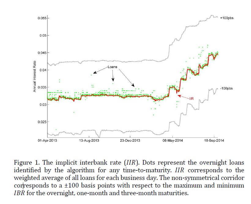 We identify interbank (i.e. non-collateralized) loans from the Colombian large-value payment system by implementing Furfine’s method. After identifying interbank loans from transactional data we obtain the interbank rates and claims without relying on fin