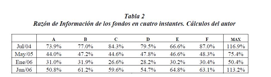 En Jara, Gómez, Pardo (2005) se concluye que los portafolios de los fondos de pensiones obligatorias son financieramente ineficientes. Esta ineficiencia puede reducir el ahorro pensional y suele estar acompañada de rebalanceos frecuentes, lo cual puede afectar el normal funcionamiento de los mercados financieros y su estabilidad. Los afiliados al sistema de pensiones obligatorias prefieren que sus ahorros sean invertidos eficientemente. Esta premisa junto con lo planteado anteriormente resalta la importancia de proponer esquemas que promuevan una mejor alineación entre las decisiones de inversión de las administradoras de los fondos y los objetivos de sus afiliados. En el presente trabajo se analizan tres propuestas: i) calcular y divulgar la Razón de Sharpe; ii) calcular y divulgar la Razón de Información; y iii) limitar inferiormente la Razón de Información. Se sugiere que la Superintendencia Financiera implemente el primer punto en el corto plazo, estudie esquemas para implementar el segundo punto en el mediano plazo y analice más a fondo la posibilidad de implementar el tercer punto en el largo plazo, si no se observa una mejora en la eficiencia de las inversiones de los fondos de pensiones.