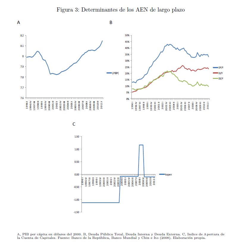 En este trabajo se calcula un nivel de equilibrio para los Activos Externos Netos de Colombia (AEN), y se estudian sus implicaciones sobre el Tipo de Cambio Real (TCR). Para determinar el nivel de equilibrio de AEN, se estima un vector de cointegración con un panel de efectos fijos ajustado por medio de Mínimos Cuadrados Dinámicos. A partir del nivel de largo plazo estimado de AEN, se analizan las implicaciones sobre el TCR a través de la metodología de Sostenibilidad Externa, la cual permite derivar niveles ideales de la Cuenta Corriente y del TCR. Los principales resultados indican que durante los últimos años, el nivel de AEN se ha ubicado cerca a sus niveles de largo plazo. Además, se detectan los períodos en los cuales el TCR ha estado relativamente alejado de sus niveles ideales.