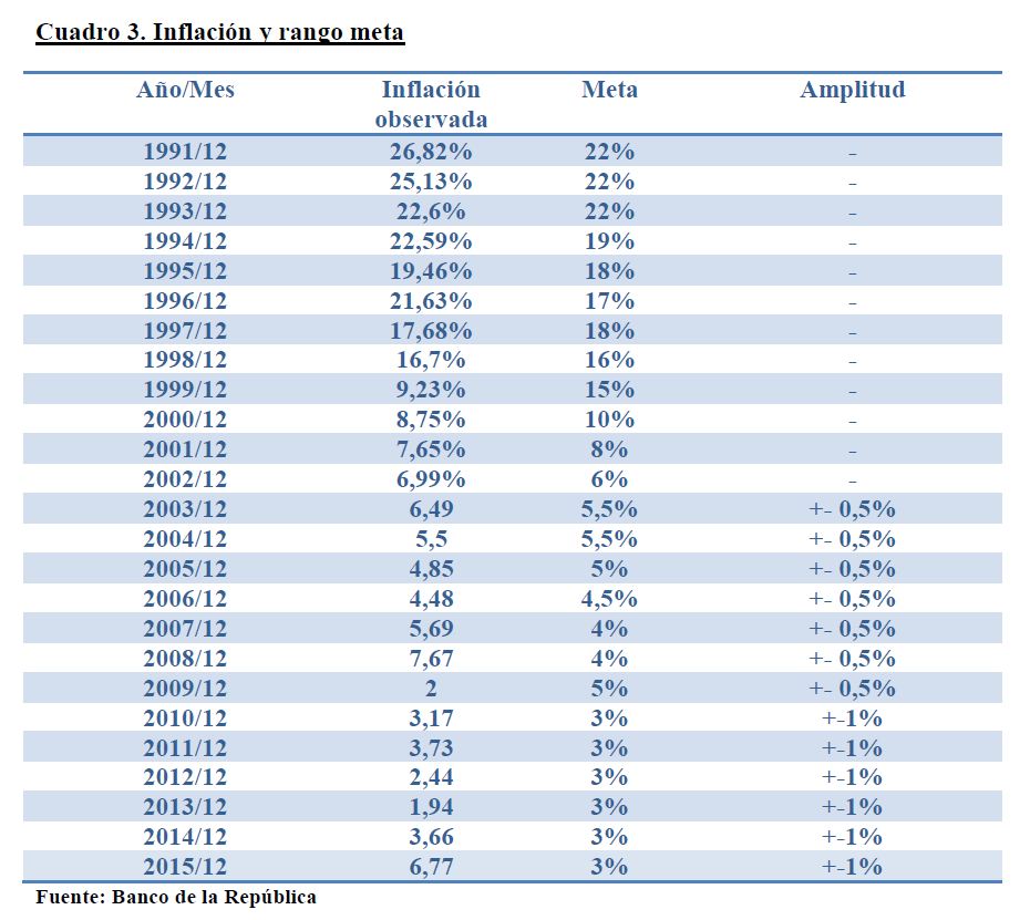 La estrategia de inflación objetivo en Colombia : una visión histórica