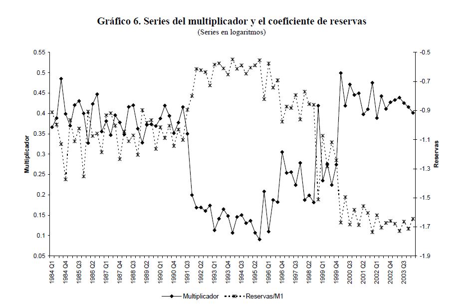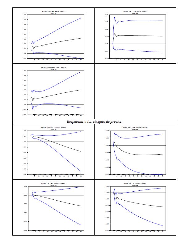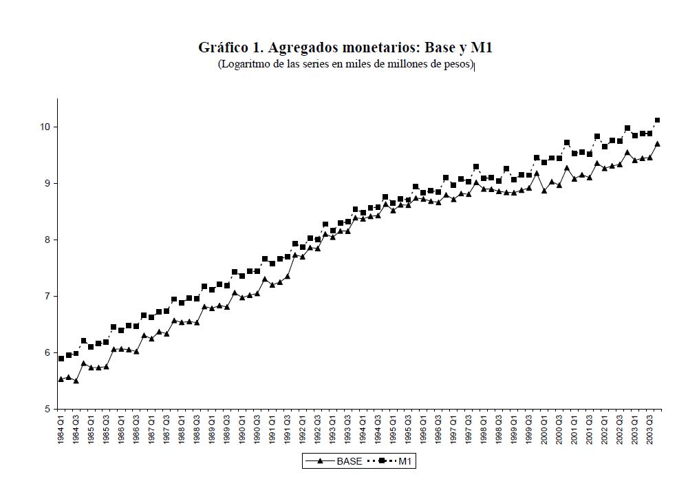A partir de un esquema de oferta y demanda de dinero se estimó un modelo de relaciones de corto y largo plazo entre cinco variables: base monetaria, dinero (M1), tasa de interés, producto y nivel de precios al consumidor (cifras trimestrales desde 1984:I hasta 2003:IV). El modelo es del tipo denominado SVEC (Structural Vector Error Correction). Los parámetros de las funciones de oferta y demanda de dinero son compatibles con las restricciones teóricas convencionales. La estimación utilizó la metodología de tendencias estocásticas comunes para realizar un análisis de impulsorespuesta y un ejercicio de pronóstico con las posibles variables débilmente exógenas.