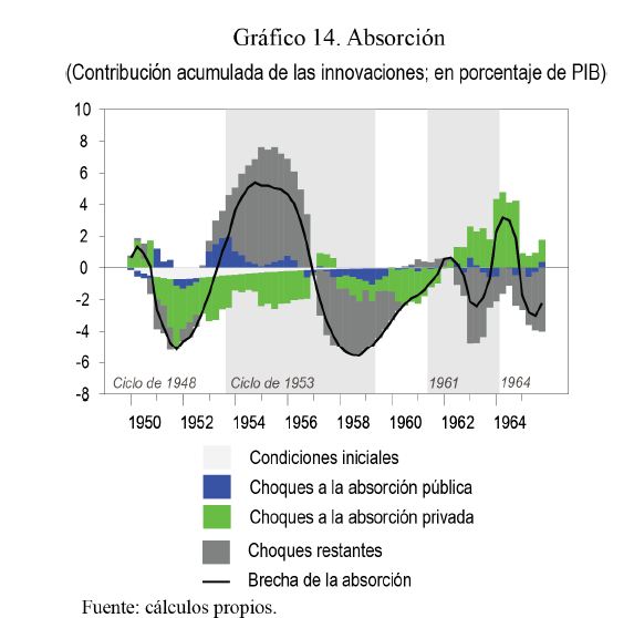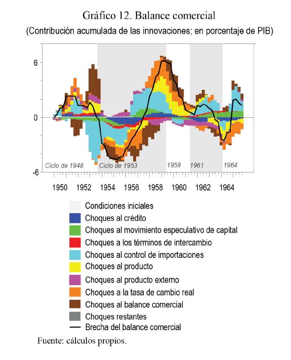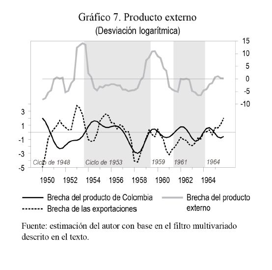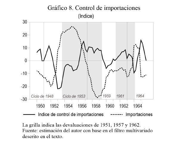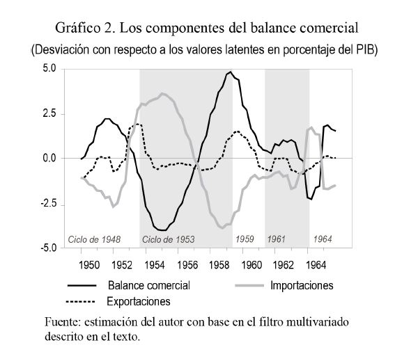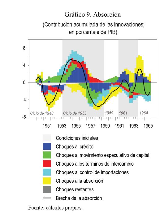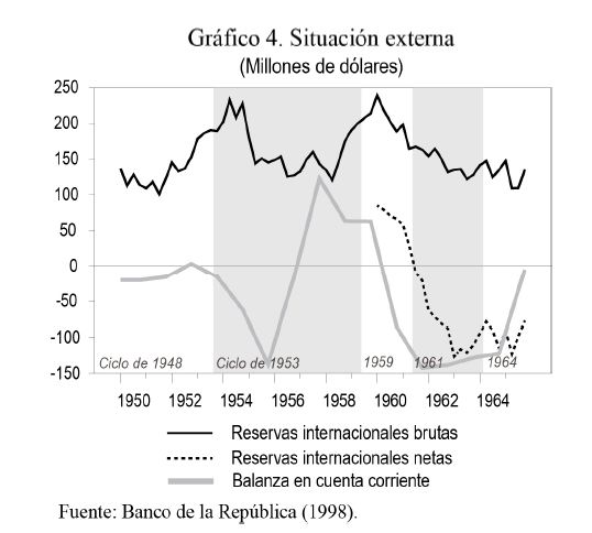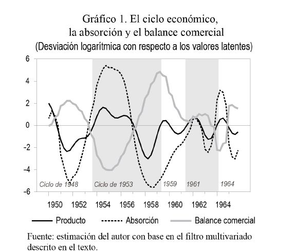 La ?flotación del peso de 1957 fue la política que más contribuyó a la estabilidad externa dentro de las políticas del primer programa de crédito contingente de Colombia con el FMI. En el artículo se especifi?ca y estima un modelo de demanda para los componentes de la ecuación macroeconómica básica durante 1950-?1965. En el modelo la política de control de importaciones se estima como una variable no observada. El modelo se utiliza para estudiar la evolución del balance comercial, la absorción y el producto por medio de ejercicios de descomposición histórica de errores. Dentro de los resultados se encuentra que mientras que la apreciación de la tasa de cambio anterior a 1957 llevó al país a una crisis de pagos, la fl?otación del peso en 1957 fue el elemento central del programa de estabilización con el FMI pues su efecto fue de lejos el más importante sobre la estabilidad externa dentro de la serie de políticas del programa de estabilización. El movimiento especulativo de capital y el crédito fueron los principales factores impulsores de la absorción, mientras que la ?flotación de la tasa de cambio tuvo un papel estabilizador sobre el ciclo económico. Los términos de intercambio no desempañaron un papel importante en la explicación del ciclo, a pesar de que la literatura comúnmente les atribuye un papel crítico. El control de importaciones ayudó a estabilizar el balance comercial, pero una ?flotación del peso más prolongada habría logrado estabilizar el balance comercial sin racionamiento de las importaciones y sin moratoria de la deuda comercial.