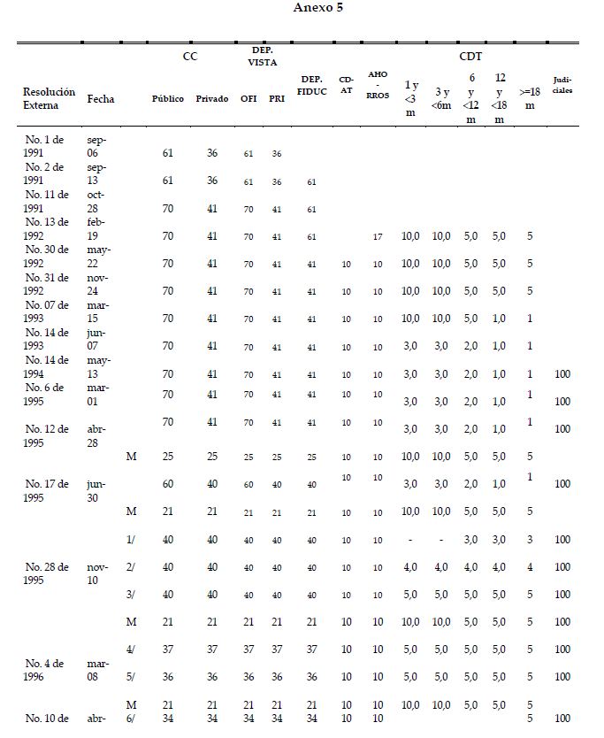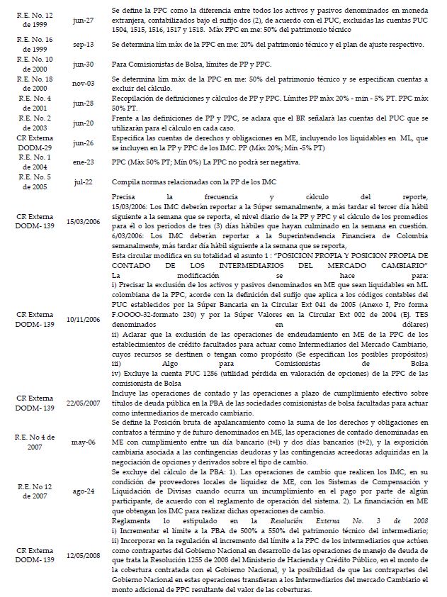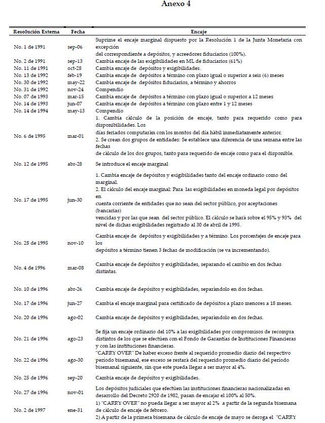 La crisis financiera colombiana de finales de la década de 1990 causó graves traumatismos a la economía del país, pero también dejó importantes lecciones para el manejo de la política macroeconómica y la regulación financiera. Sin embargo, hoy en día no hay consenso sobre el impacto que tuvieron las medidas macroprudenciales sobre las principales variables económicas. Esto se debe, en parte, por la ausencia de un recuento detallado de las acciones de política adoptadas por los diversos entes gubernamentales y del contexto en que estas se desarrollaron. Este artículo pretende contribuir a la literatura proporcionando un listado exhaustivo de los cambios regulatorios en el sistema financiero durante los últimos 25 años. Específicamente, nos centramos en tres grandes tópicos financieros: i) encajes bancarios, ii) derivados financieros y posición propia, y iii) riesgos de crédito, de mercado y de liquidez. Por consiguiente, el aporte principal de este trabajo es de servir como insumo de futuras evaluaciones de impacto que se realicen sobre las medidas macro-prudenciales en Colombia.
