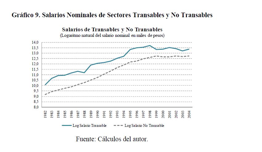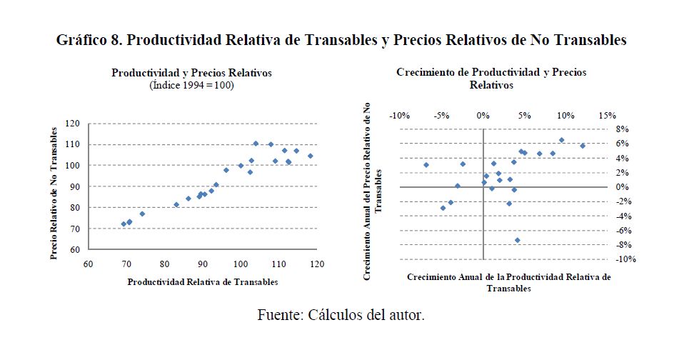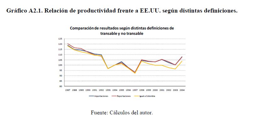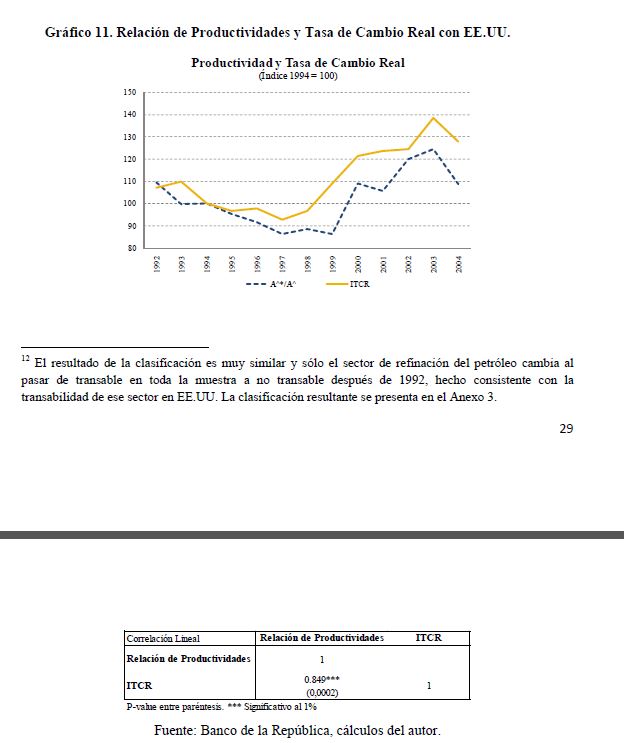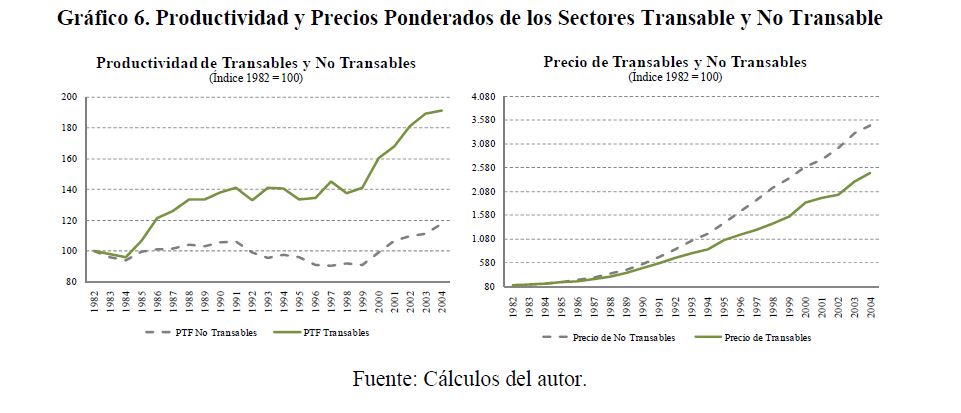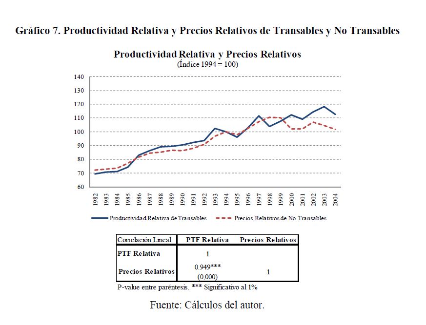 El efecto Balassa-Samuelson (B-S) establece que aumentos en la productividad de los sectores transables deberían llevar a un incremento del nivel de precios de los no transables y, por tanto, a una apreciación real de la tasa de cambio. En este trabajo se evalúa la ocurrencia del efecto B-S en Colombia utilizando información de la industria manufacturera. Los resultados muestran indicios de que se cumple el efecto B-S ya que la productividad relativa de sectores transables y no transables nacionales está relacionada de manera directa con los precios relativos de bienes no transables. Adicionalmente, agregando información de la industria de Estados Unidos, muestran que la productividad de los sectores transables nacionales relativa a los estadounidenses podría estar detrás de los movimientos de la tasa de cambio real bilateral.