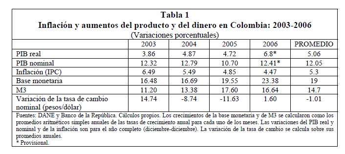 La inflación y la política monetaria colombianas del período 1996-2006: una interpretación